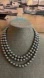 EUC excellent Vintage 70s LONG Silver Knotted Glass Pearl Necklace 59” inch long 1/2” inch thick silver gray glass pearls