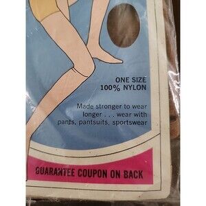 These pantyhose are a rare find and are sure to add a touch of vintage charm to any outfit. The one size fits all design makes them easy to wear and the sheer material adds a touch of elegance. Don't miss out on the chance to own these classic pantyhose.