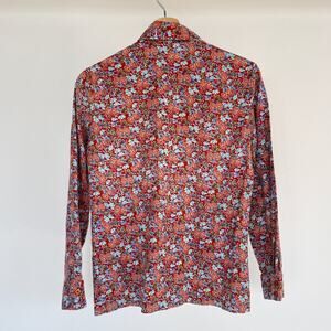 Vintage 70s Land N Sea Floral Button Up Collared Shirt Cotton Sz 34 S/M Retro