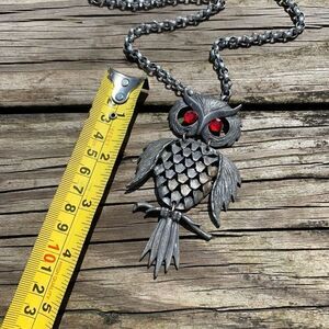 Vintage 70s Large Articulated Silver Tone Owl Pendant Necklace in pre owned condition.