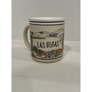 This vintage Las Vegas mug is an absolute great condition. The super cool design feels embossed into the clay, not just printed on. the bottom of the mug says made in Japan. But, you know, Vegas.