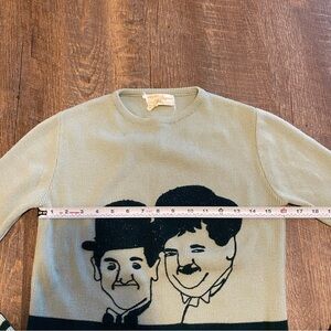 Vintage 70s Laurel and Hardy Graphic Sweater. Great vintage look! No holes or stains. No size tag but measurements to be a small. See pictures.