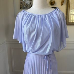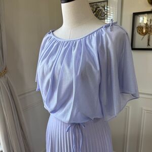 Vintage 70s Lavender Formal Gown Blouson Accordion Pleat Dress Prom Halloween Ca