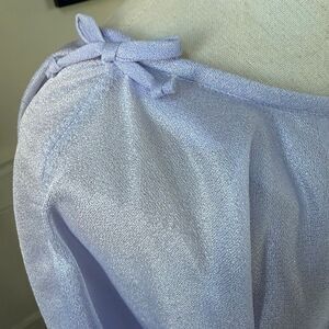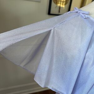 Vintage 70s lavender formal dress, maybe from prom or bridesmaid, but it would also be perfect as part of a Halloween costume for a Stephen King Carrie theme. Blouson top with split flutter sleeve and little bows on each side with a small bow at the waist before falling to a long A-line accordion pleat skirt. The fabric feels like a lightweight nylon or polyester. Back zip closure. No tags but it’s featured on my size medium dress form where it fits well but I think it would fit a larger size small or a smaller size medium best. Please double check measurements to ensure the proper fit for you. Laying flat measures 18 inches armpit to armpit, 13 inches across the waist and 18 inches across the hip and 57 inches shoulder to hem