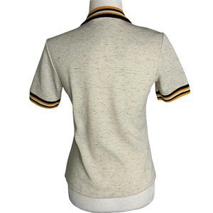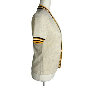Vintage 70s Layered Look Cardigan Pant Set S Beige Knit Buttons Elastic Waist