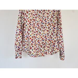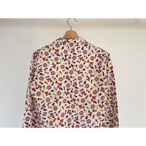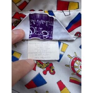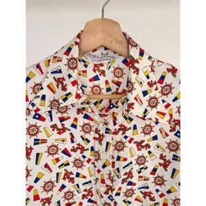 Disco hippie button up with primary color flags and ship wheel. Pattern dated 1972. Not sure the size, fits estimated M/L