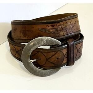 Detailed, tooled Egyptian symbols across entire length of the belt. Very unique!