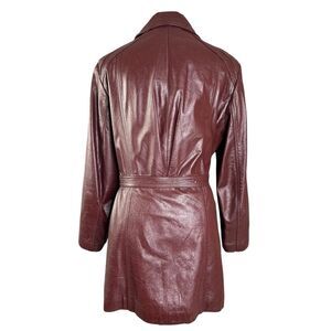 Vintage 70s Leather Jacket L Burgundy Button Belted Classic Directions Coat