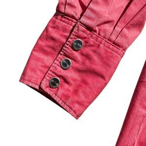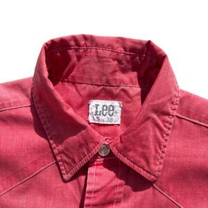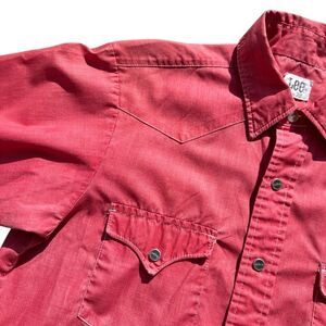 Vintage 70s Lee Red Western Button Up Shirt Size 38 Medium Metal Snaps