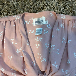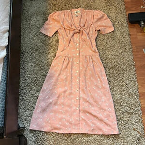 Vintage 70s Leslie Fay Light Pink Floral Button Up Dress Size 8