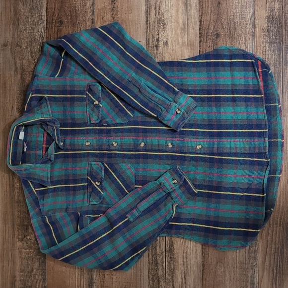 Vintage 70s Levi's Heavyweight Flannel Blue Tag Size Medium in Green and Blue