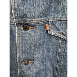 Vintage 70s Levis Orange Tab Denim Jacket Mens XL Jean Chore Coat Split Tail. No holes but some small stains found as shown in photos. Measurements in photos. Fast shipping!