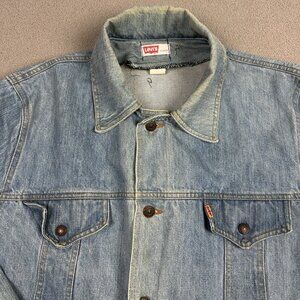 Vintage 70s Levi’s Split Tail Denim Chore Jacket Men’s XL Blue Orange Tab