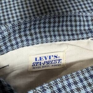 Vintage 70's Levi's Sta-Prest plaid houndstooth pants, size removed- waist and inseam measurements provided in pictures.