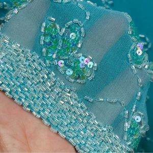 1970s exquisite Blue and White Sequins and beading in iridescent beads.