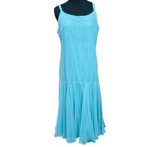 Vintage 70’s Light Blue 100% Silk Formal Dress 2 Piece Slip & Long Beade…