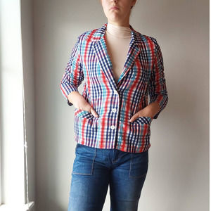Vintage 70s Lightweight Plaid Seersucker Blazer