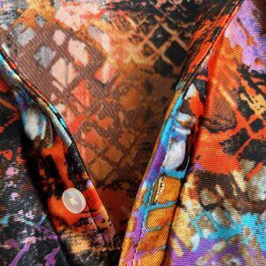 Vintage 70s Lilly Dache Shirt Mens Artsy Polyester Large Disco MCM Hipster RARE
