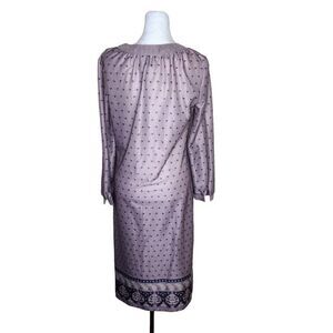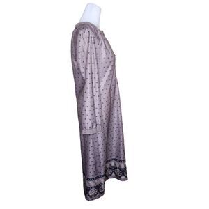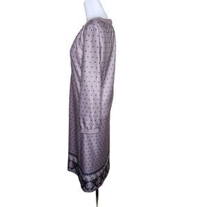 Vintage 70s Long Sleeve Midi Shift Dress Womens Size 10 Dusty Purple Black Borde