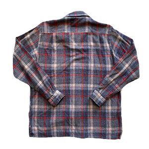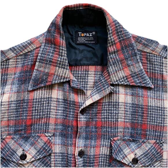 Vintage 70s Loop Collar Flannel Shirt Wool Blend Topaz Plaid Medium Camp