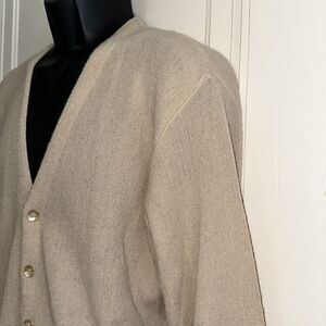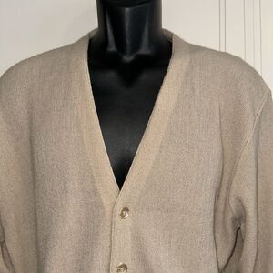 Vintage 70s Lord Jeff Jefflinks light tan DuPont orlon cardigan golf sweater