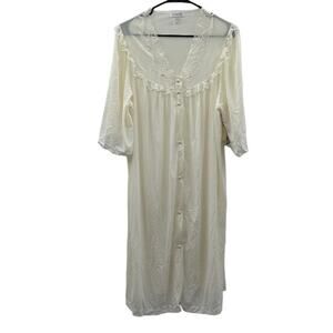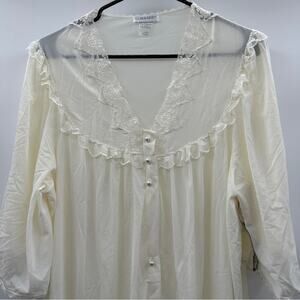 Vintage 70's Lorraine Off White Lace Prairie Cottagecore Button Nightgown Sz L