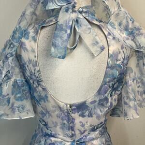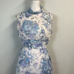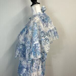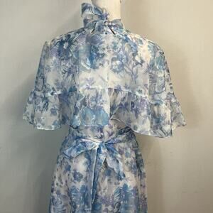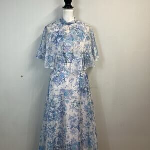 Vintage 70's Lorrie Deb Dress & Cape size 13/14 Blue Floral Bridesmaid Wedding