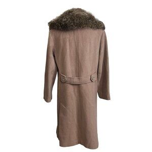 Vintage 70s M Coat Union Made Wool Fur Trimmed Collar Winter Coat Retro Pink Tan