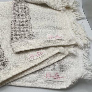 Vintage 70s MCM Flower Brown White Hand Towels Boho Groovy Fringe Set Of 3