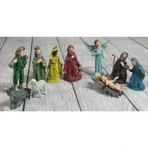 Vintage 70's MCM Plastic Nativity Set Of 10 Blue Green Red Made In Italy