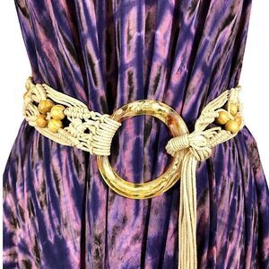 Vintage 70’s Macrame Bohemian Braided Rope Belt with Wood Beads