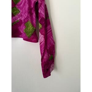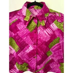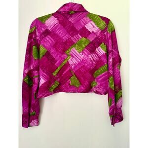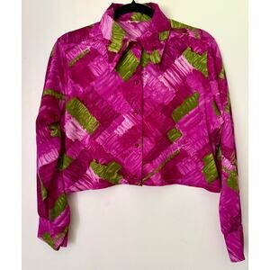 Vintage 70's Magenta Pink Dagger Collar Abstract Long Sleeve Cropped Top Medium
