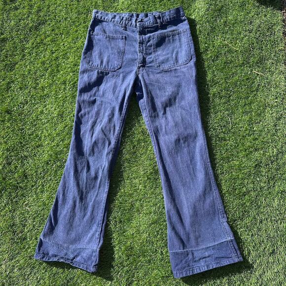 Vintage 70s Male Slacks Jeans Dark Wash Denim Bell Bottoms 31 x 29.5 USA