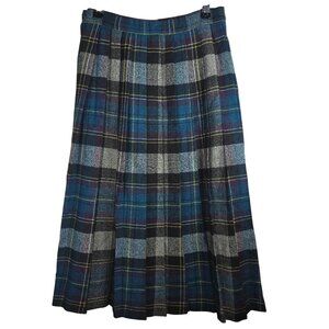 Vintage 70's Marilyn Togs Tartan Plaid Blue Mid 1" Pleat Knee Length MIdi Skirt