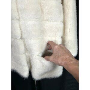 Vintage 70s Marshall Fields Mod Cream Rabbit Fur Leather Coat 12 "Bell Sleeves