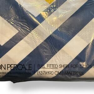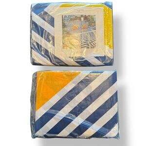 Vintage 70s Martex full flat and fitted sheet NOS in package Navy, white and gold