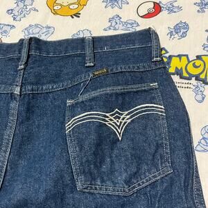 Vintage 70s Maverick Dark Wash Embroidered Jeans 36x29