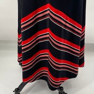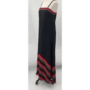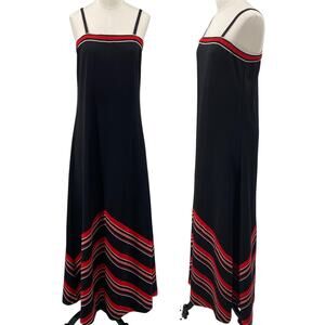Vintage 70s Maxi Dress Spaghetti Strap Chevron Stripe Hem ILGWU Black Red Small