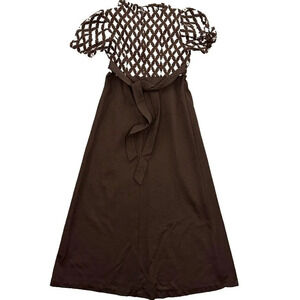 Vintage 70s Maxi Dress Womens Small Argyle Diamon Empire Waist Belted
