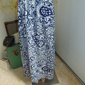 Vintage 70s Maxi Skirt Blue White Paisley Floral Prairie Cottagecore Sz M