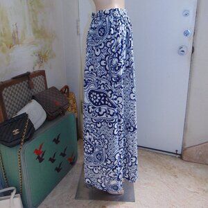 Embrace the vintage charm with this beautiful blue and white paisley floral maxi skirt from the 1970s. Perfect for a casual day out, this original polyester skirt features a prairie cottagecore design that is sure to turn heads. The waist size is 26 inches and the waist to hem length is 39 inches and would fit a modern medium... high waisted! This skirt is a regular size medium and is perfect for those who love the hippy look. It is a vintage original and has not been modified in any way. The skirt is made from a high-quality polyester material that is both comfortable and durable. Add this vintage piece to your wardrobe today and give it a unique touch that will make you stand out from the crowd. No size tag so do see measurements, pictured on a size medium mannequin!