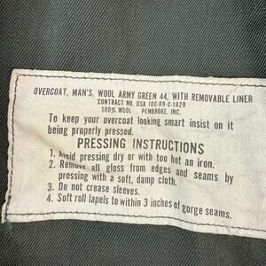 Vintage 70s Men's 44 Wool Army Green Coat with Removable Liner