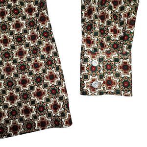 Vintage 70's Sears Button Down Shirt Medium Pointy Collar Polyester Medallion