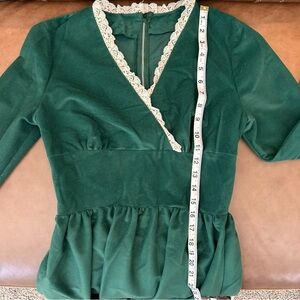 Vintage 70s Milk Maid Lace Trim Renaissance Cottage Green Velvet Maxi Dress SM