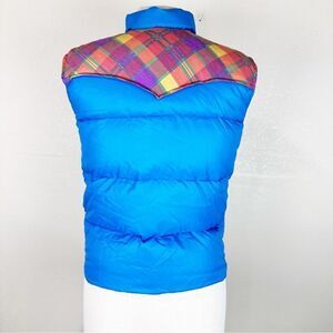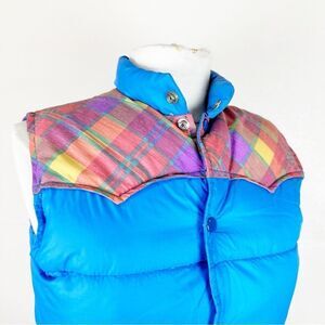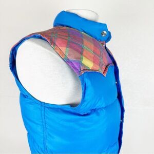 Vintage 70s Miller Puffer Vest Goose Down Plaid Check Retro Blue Snap NEW XS/S