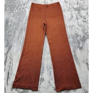 Vintage 70s Mirbella Knits Pants Womens L Brown Rust Metallic Pull On Wide Leg