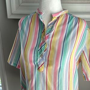 Vintage 70s Miss Fashionality Rainbow Shortsleeve Summer Top Made in the USA