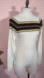 charming vintage ski sweater from the 70's. Creamy winter white with a mod large stripe of a mod weave of primary colors of yellow, real red, Kelly green and black. slim cut sweater with a fold over turtle neck that can be scrunched up, long sleeves and a straight hem. Chic vintage ski bunny design.