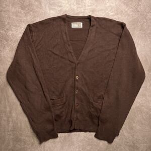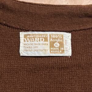 Vintage 70s Montgomery Ward Cardigan Sweater Tight Knit Brown Men's XL Preppy