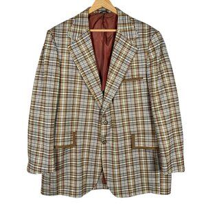 Vintage 70s Montgomery Ward Sport Coat 44L 46L Plaid Check Collegiate Mod Disco